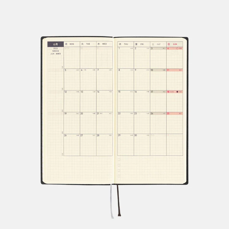 | 紙質・製本 | 薄くて軽く、裏抜けの少ないトモエリバー(手帳専用紙)/糸かがり製本 |