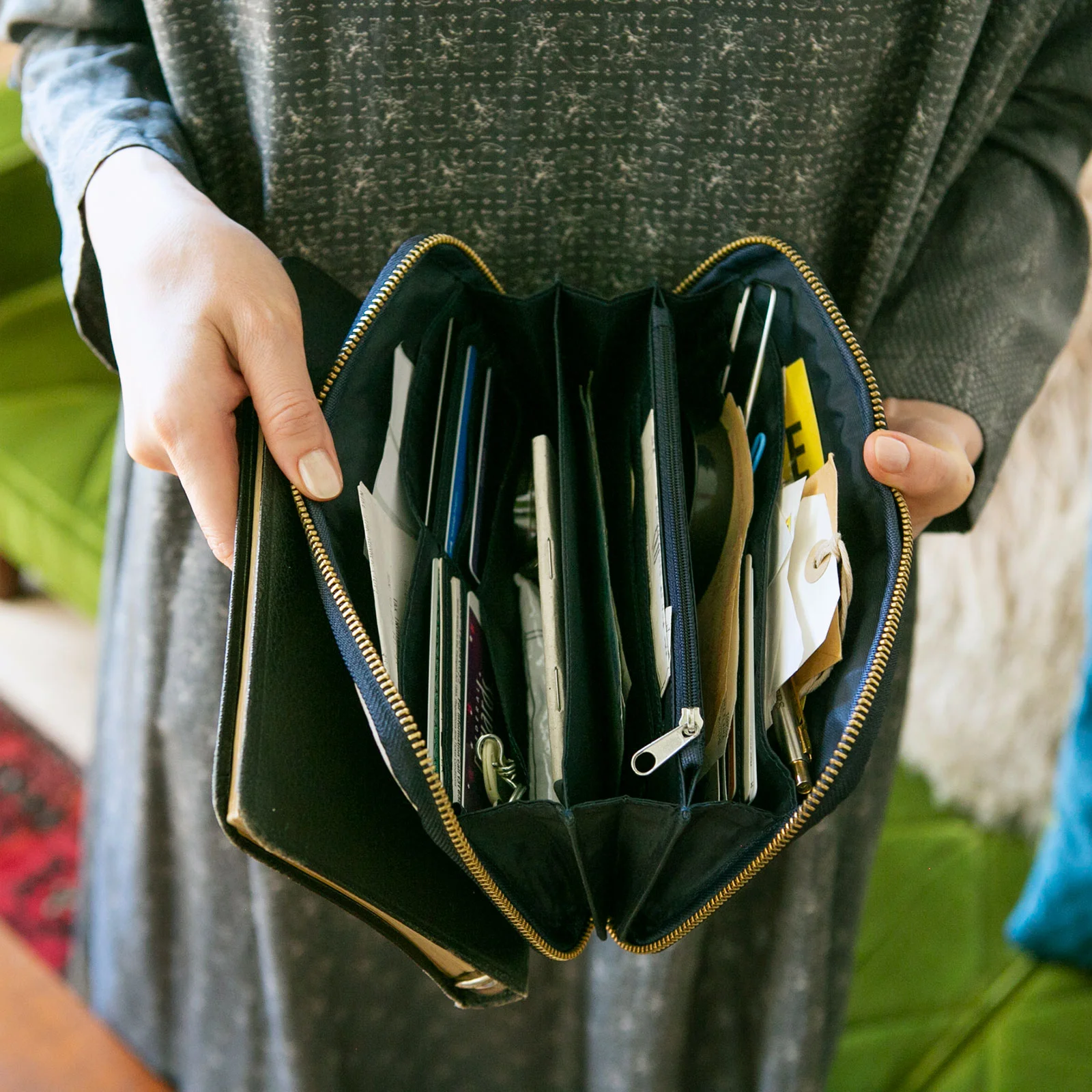 通帳やカード、印鑑や領収証などをひとまとめにして、