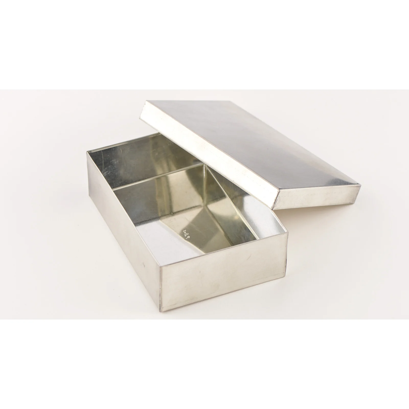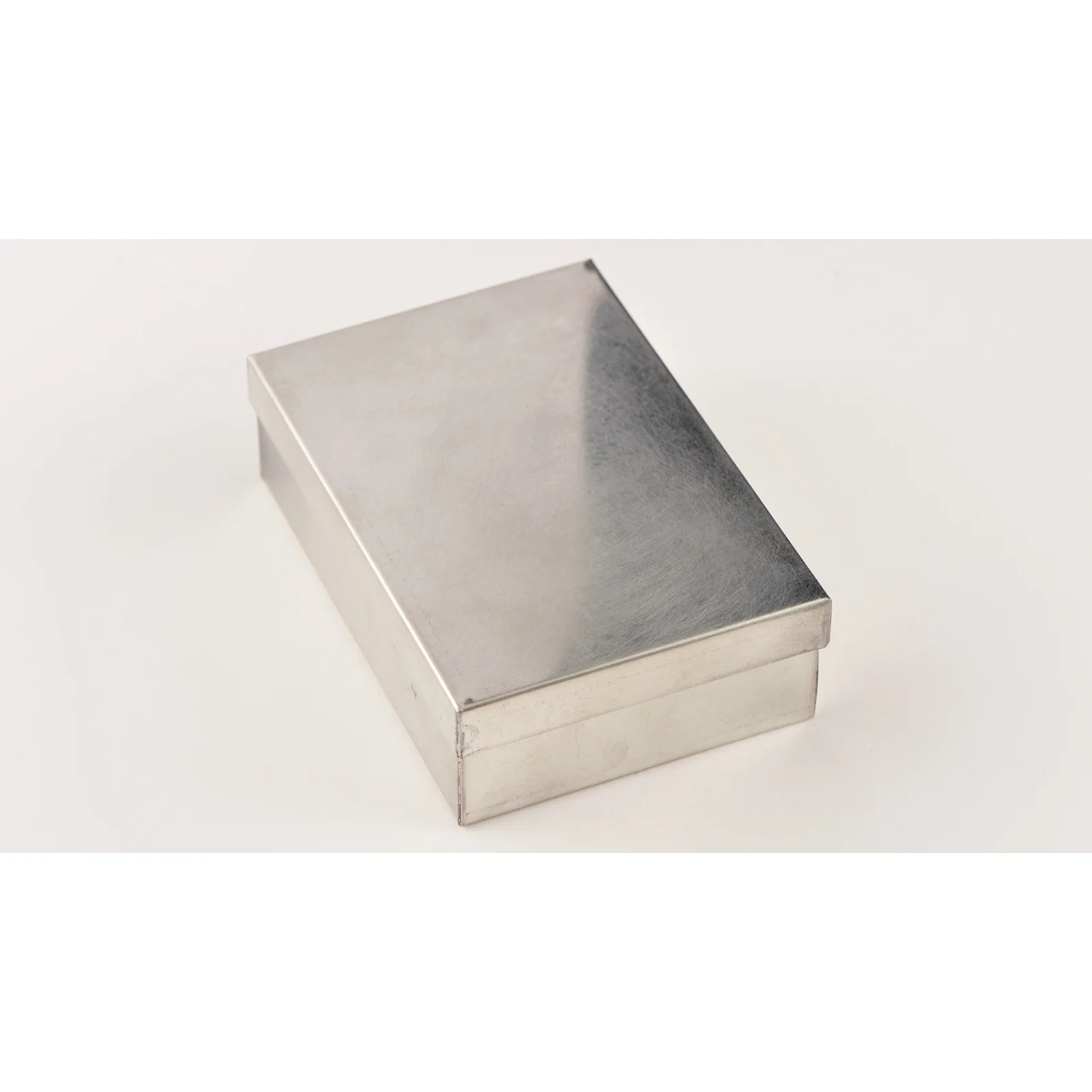 ポストカードサイズのブリキ製小箱。