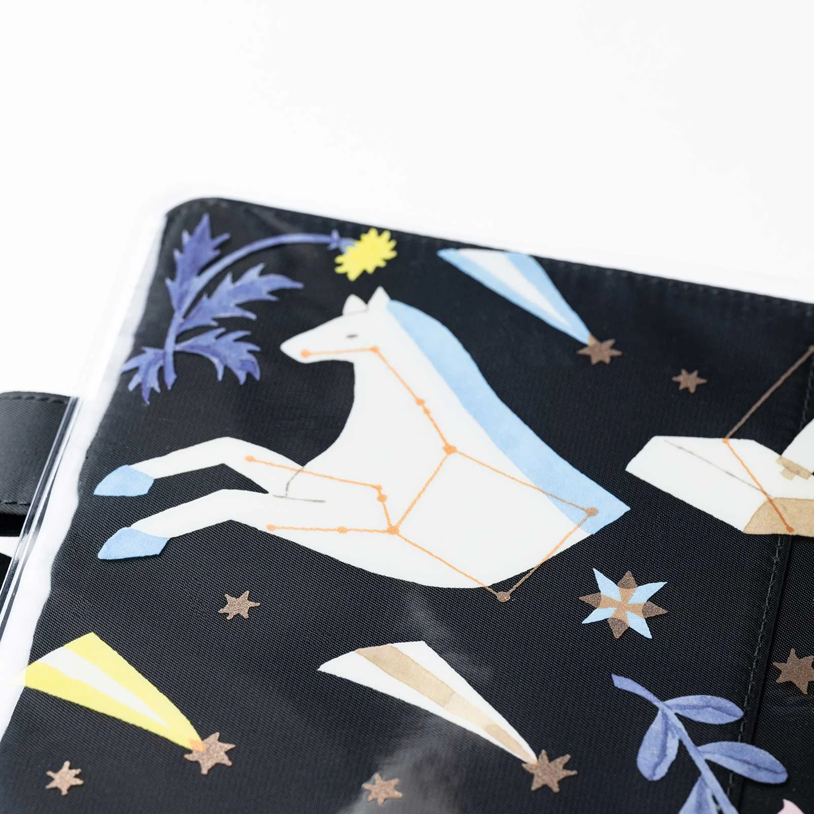 この「カバー・オン・カバー」は、イラストがきれいに見えるように、手帳カバー外側にある「外側ポケット」用のスリットがありません。