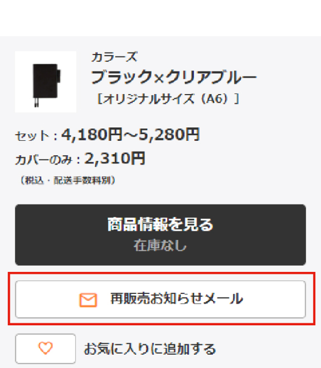 ※こちらは手帳のみのサービスです。文房具や雑貨といった商品には再販売お知らせメールはありません。