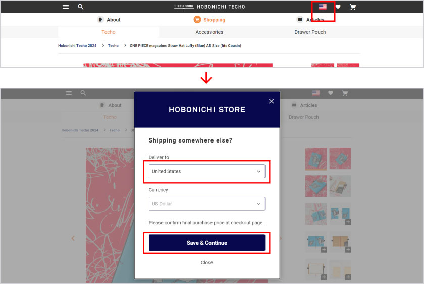 「ほぼ日ストアヘルプ 海外:お申し込みの流れ(初めての方)」から