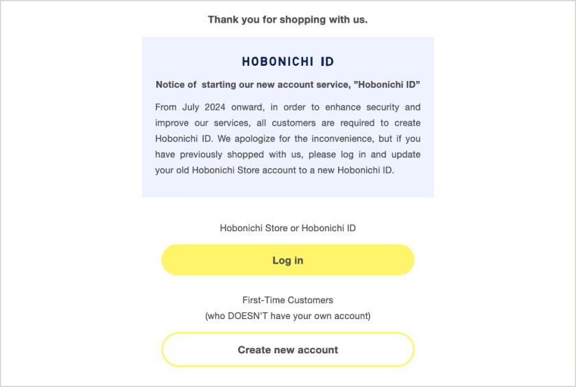 「ほぼ日ID」への移行手続きをお願いしたします。