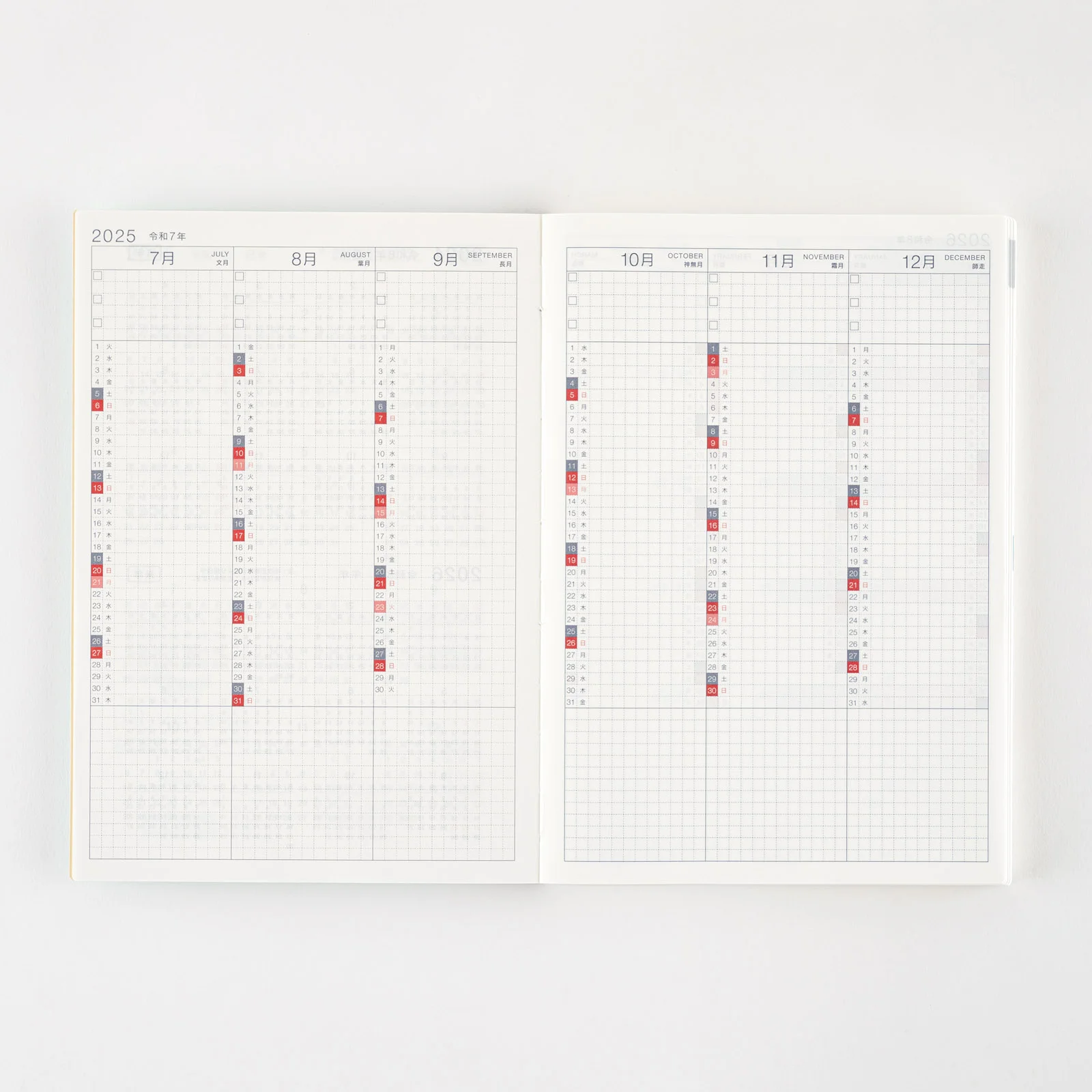 | 週間ダイアリー | 前期:2024年12月30日〜2025年7月6日(全54ページ) 後期:2025年6月30日〜2026年1月4日(全54ページ) |