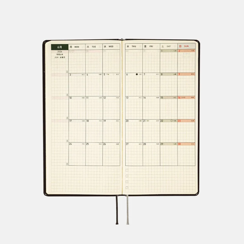 | 紙質・製本 | 薄くて軽く、裏抜けの少ないトモエリバー(手帳専用紙)/糸かがり製本 |