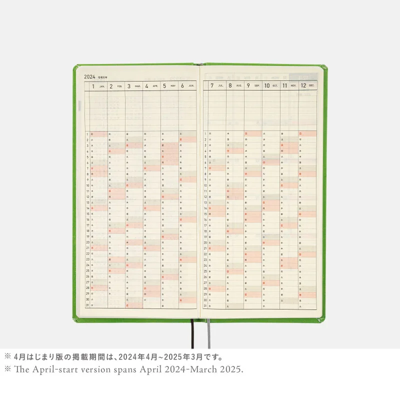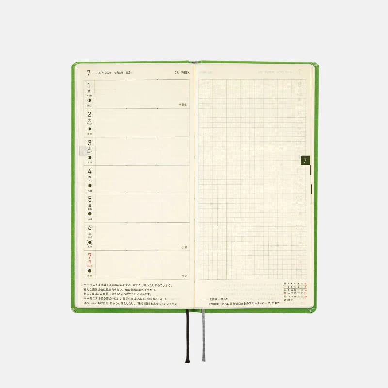 | 紙質・製本 | 薄くて軽く、裏抜けの少ないトモエリバー(手帳専用紙)/糸かがり製本 |