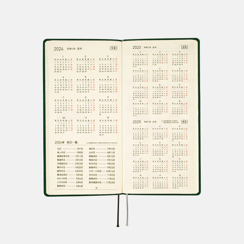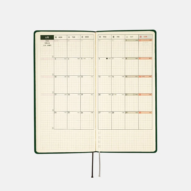 | 紙質・製本 | 薄くて軽く、裏抜けの少ないトモエリバー(手帳専用紙)/糸かがり製本 |