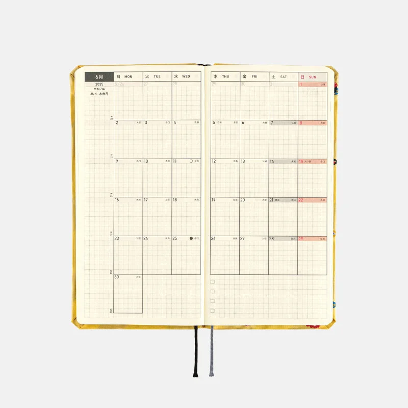| 紙質・製本 | 薄くて軽く、裏抜けの少ないトモエリバー(手帳専用紙)/糸かがり製本 |