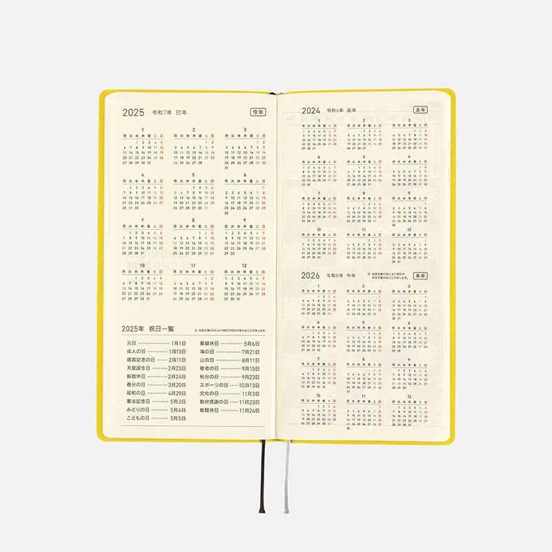 | 記載される内容 | 週番号/六曜(大安、仏滅など)/二十四節気(立春、春分、夏至など)/祝日、記念日など(バレンタインデー、ひなまつり、母の日、父の日など)/月の満ち欠け(週間ページ全てに記載・月間カレンダーに満月と新月のみ記載) |