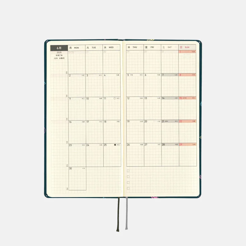 | 紙質・製本 | 薄くて軽く、裏抜けの少ないトモエリバー(手帳専用紙)/糸かがり製本 |