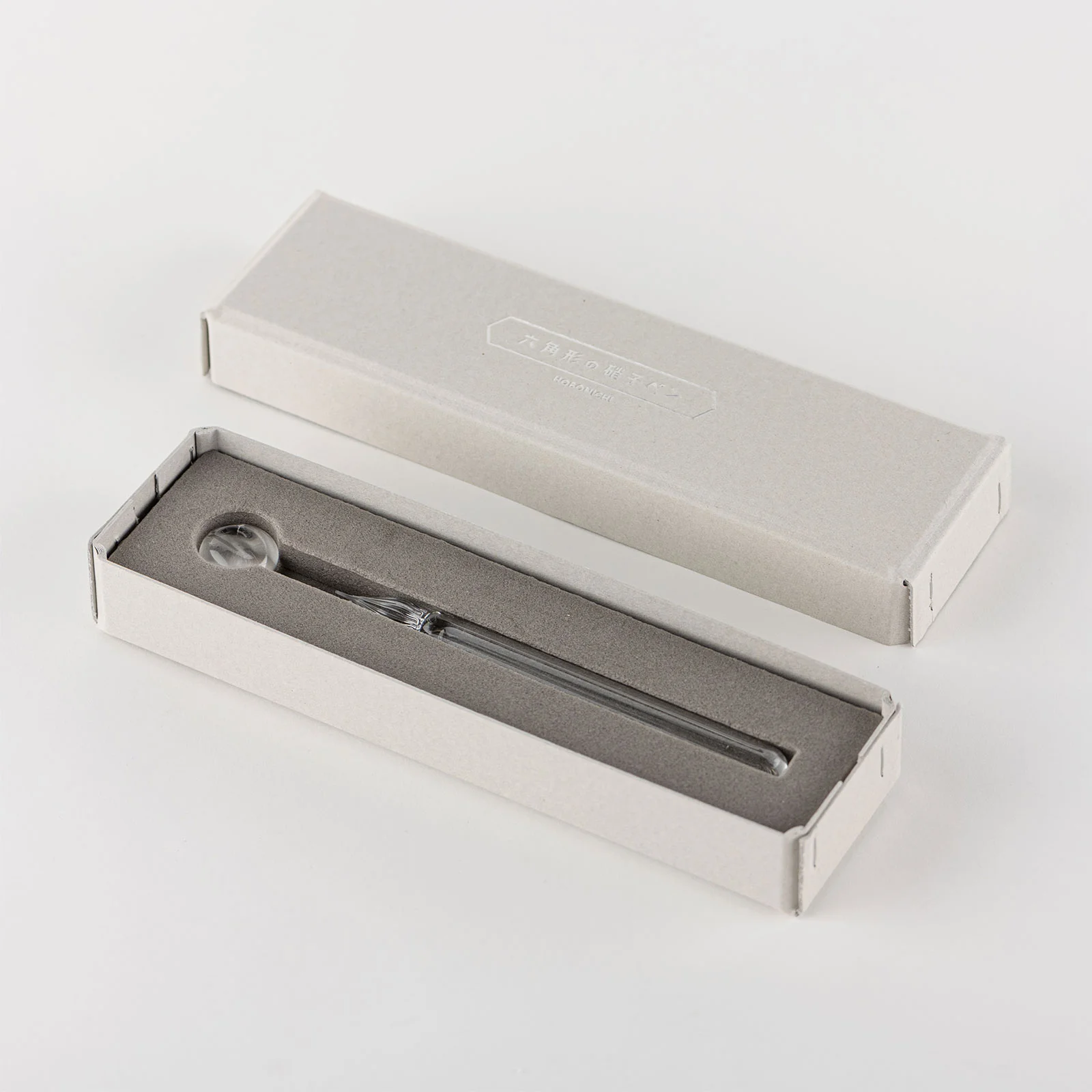 2021年2月販売分の「六角形の硝子ペン 02(すこし太め)」については、ボディのおしり部分がフロスト仕上げになっていません。