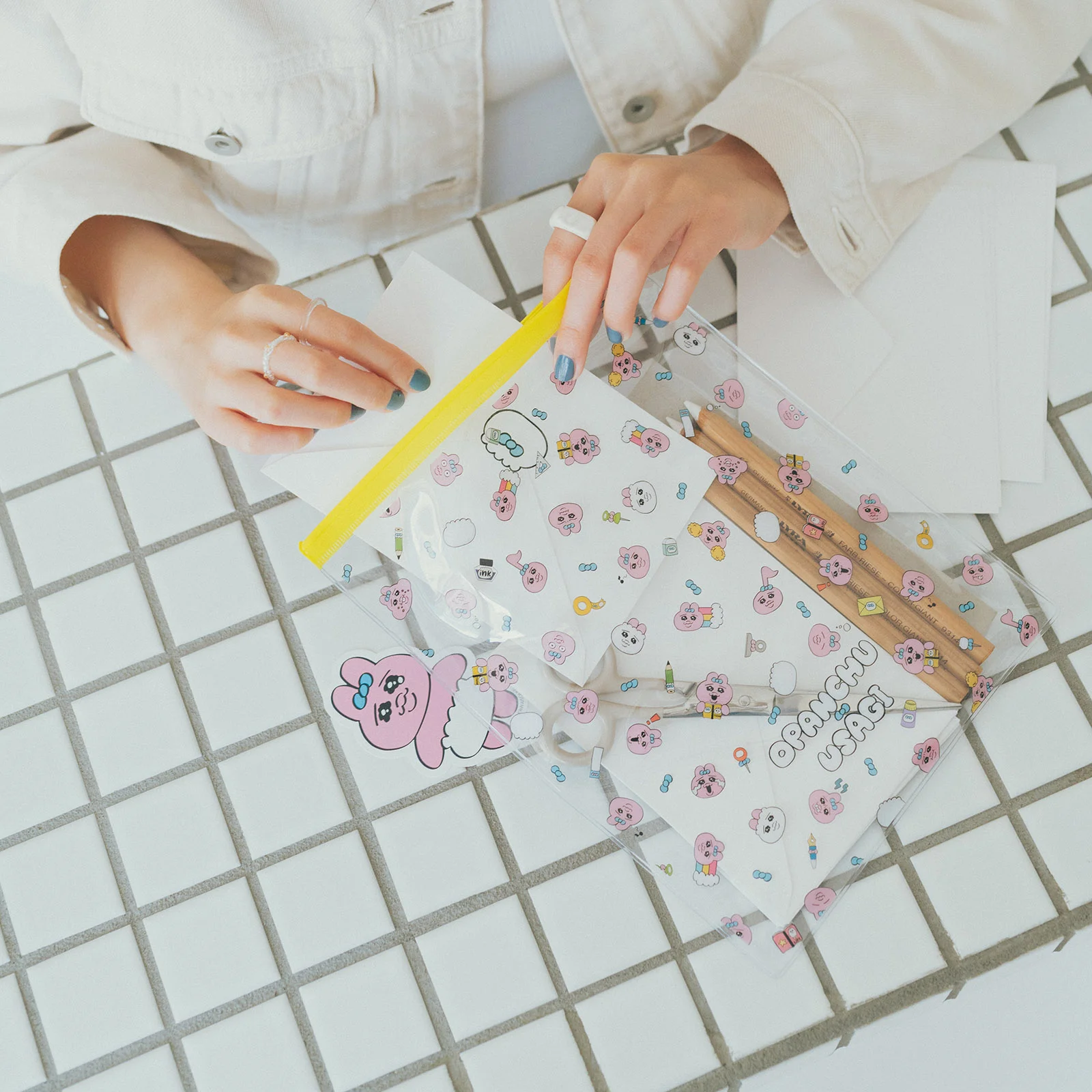 ポケットティッシュとおぱんちゅうさぎの顔のクリアシール、
