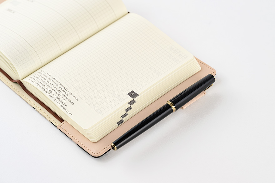 | 紙質・製本 | 薄くて軽く、裏抜けの少ないトモエリバー(手帳専用紙)/糸かがり製本 |