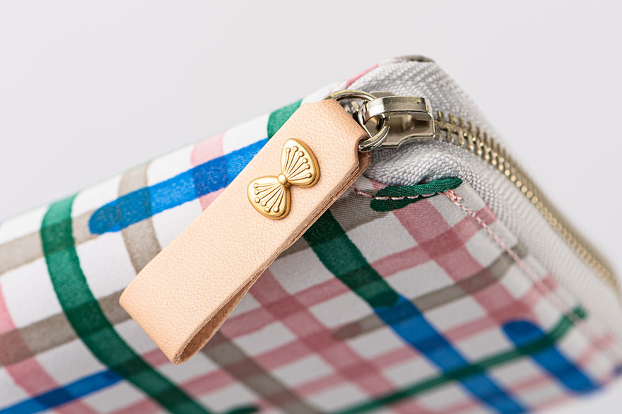 ジッパーの引き手はヌメ革製で