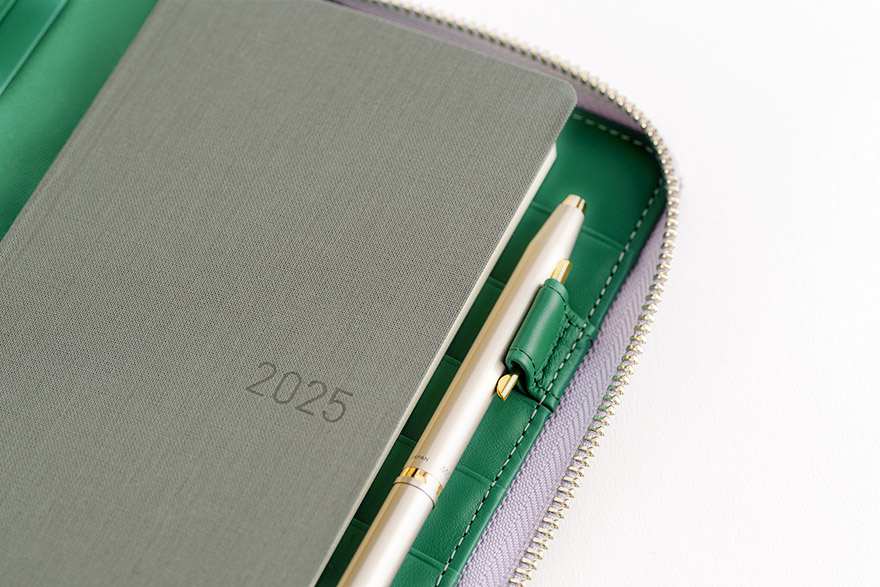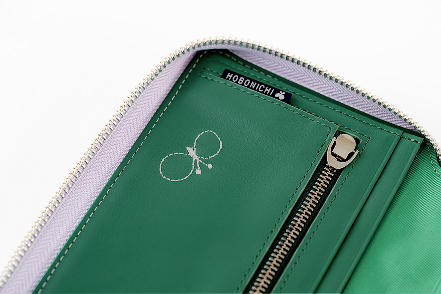 内側には、深いグリーンの牛革をあわせ、