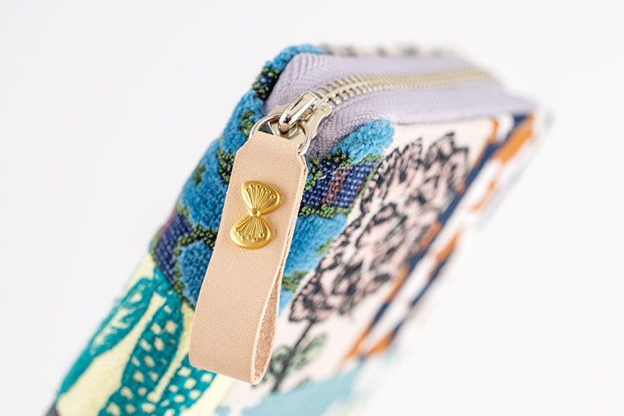 ジッパーの引き手はヌメ革製で
