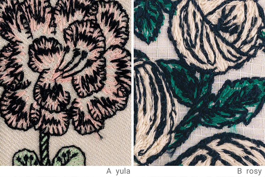 生命力を感じる草花の姿を刺繍で表現。