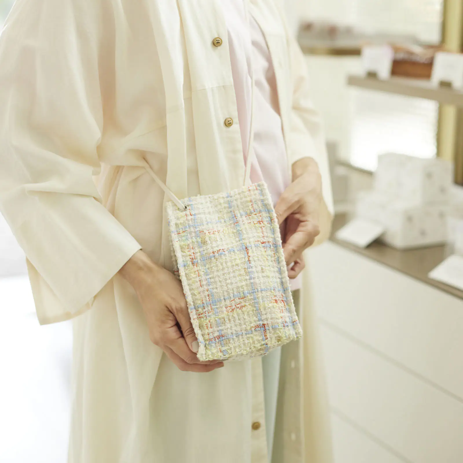 ちょっと近所へ出かけるときのミニショルダーとして。買い物などで帰りに荷物が増えそうなら、小さくたたんだエコバッグを入れておくと◎。