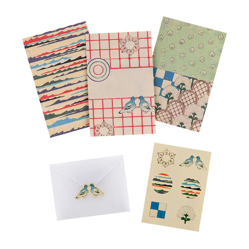 | サイズ | 縦81mm×横112mm×厚さ36mm (カード12種×2枚 封緘シール1シート 封筒6枚) |