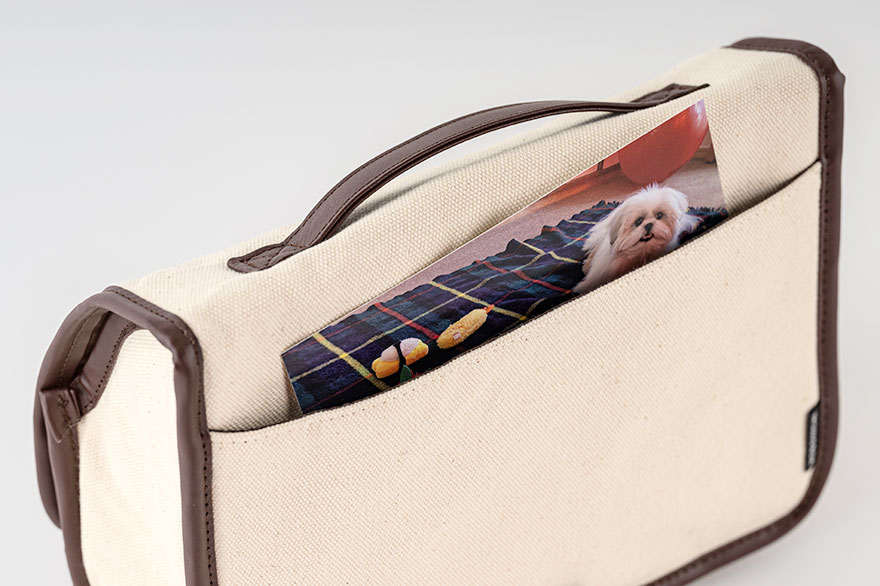 裏面のポケットに入れると便利です。