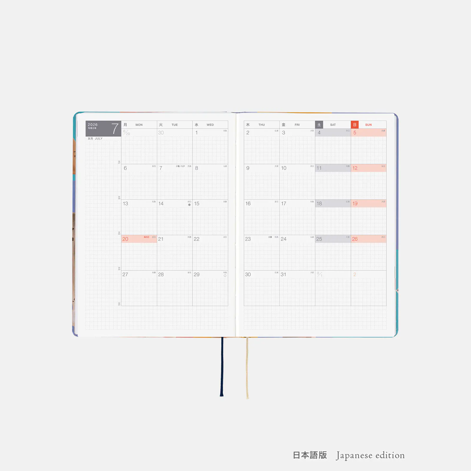 *右ページに「ミニカレンダー」を掲載(月曜はじまり)。