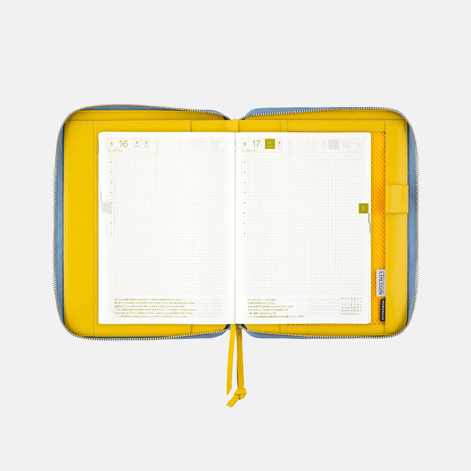 | 記載される内容 | 日番号/週番号(月間カレンダー・週間ダイアリーに記載)/月の満ち欠け(1日ページ全ページに記載、月間カレンダー・週間ダイアリーに満月と新月のみ記載) |