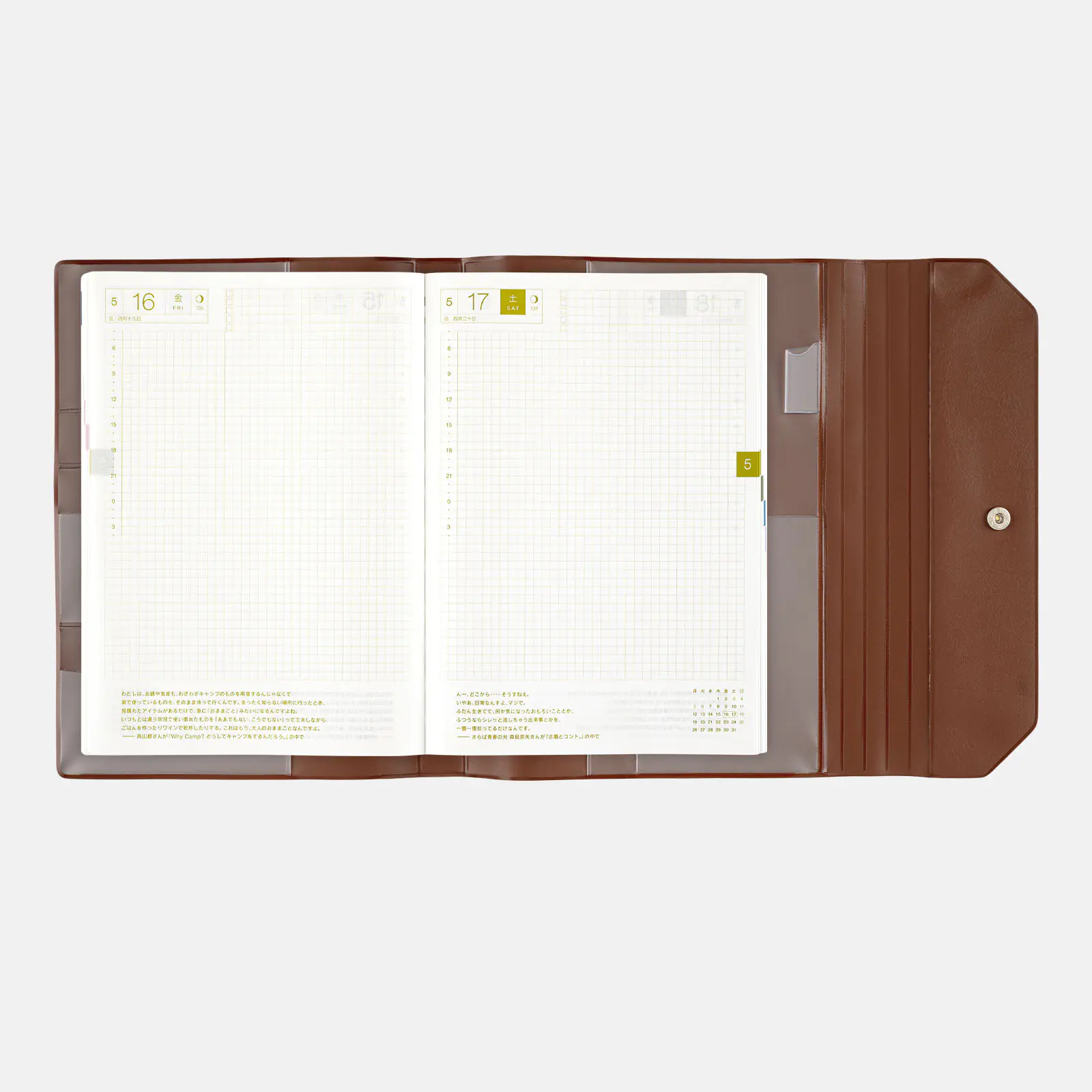 1日のスペースが広く、のびのびと書けるA5サイズ。家や仕事場に置いておく「置き手帳」や育児日記、交換日記といった用途にもおすすめです。