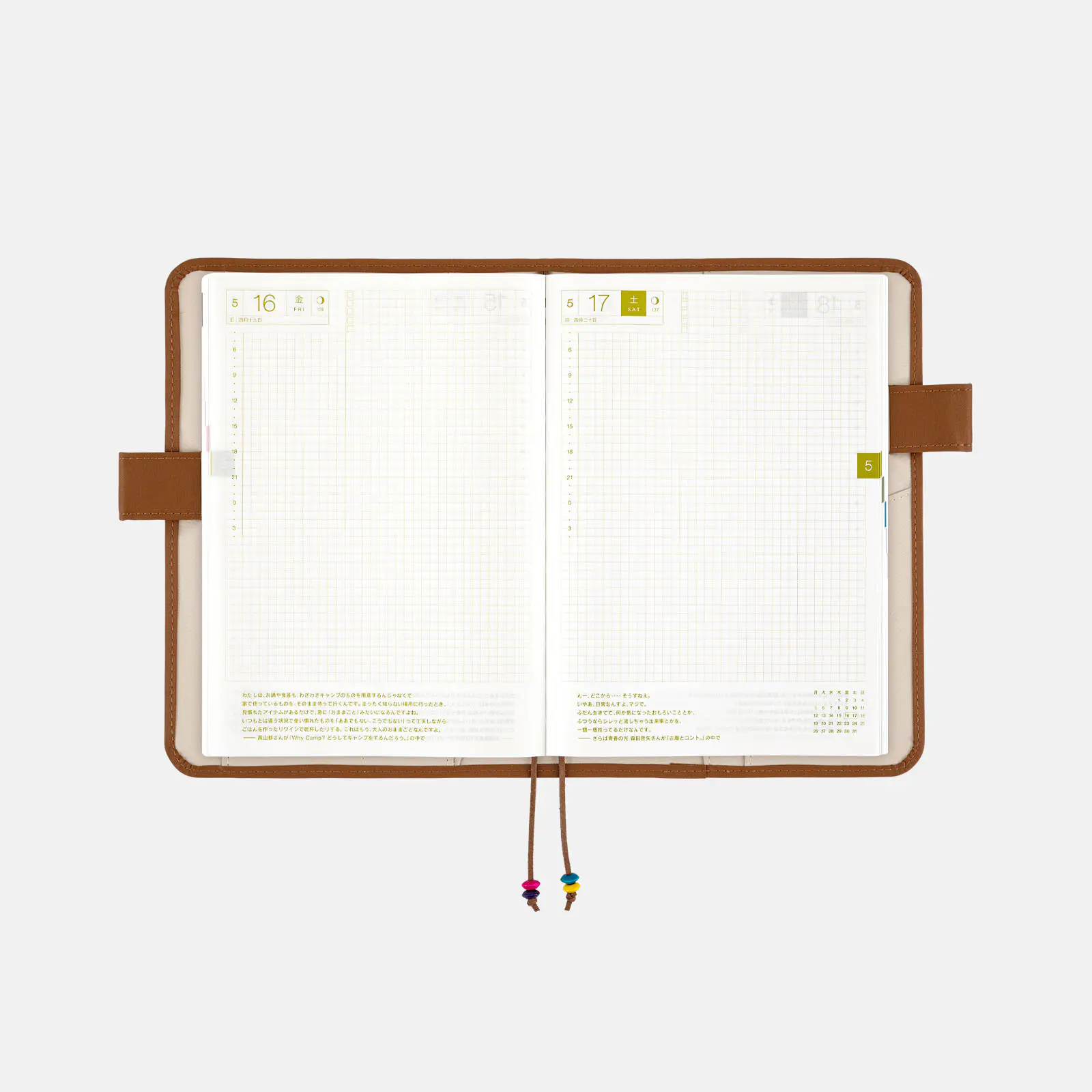 1日のスペースが広く、のびのびと書けるA5サイズ。家や仕事場に置いておく「置き手帳」や育児日記、交換日記といった用途にもおすすめです。