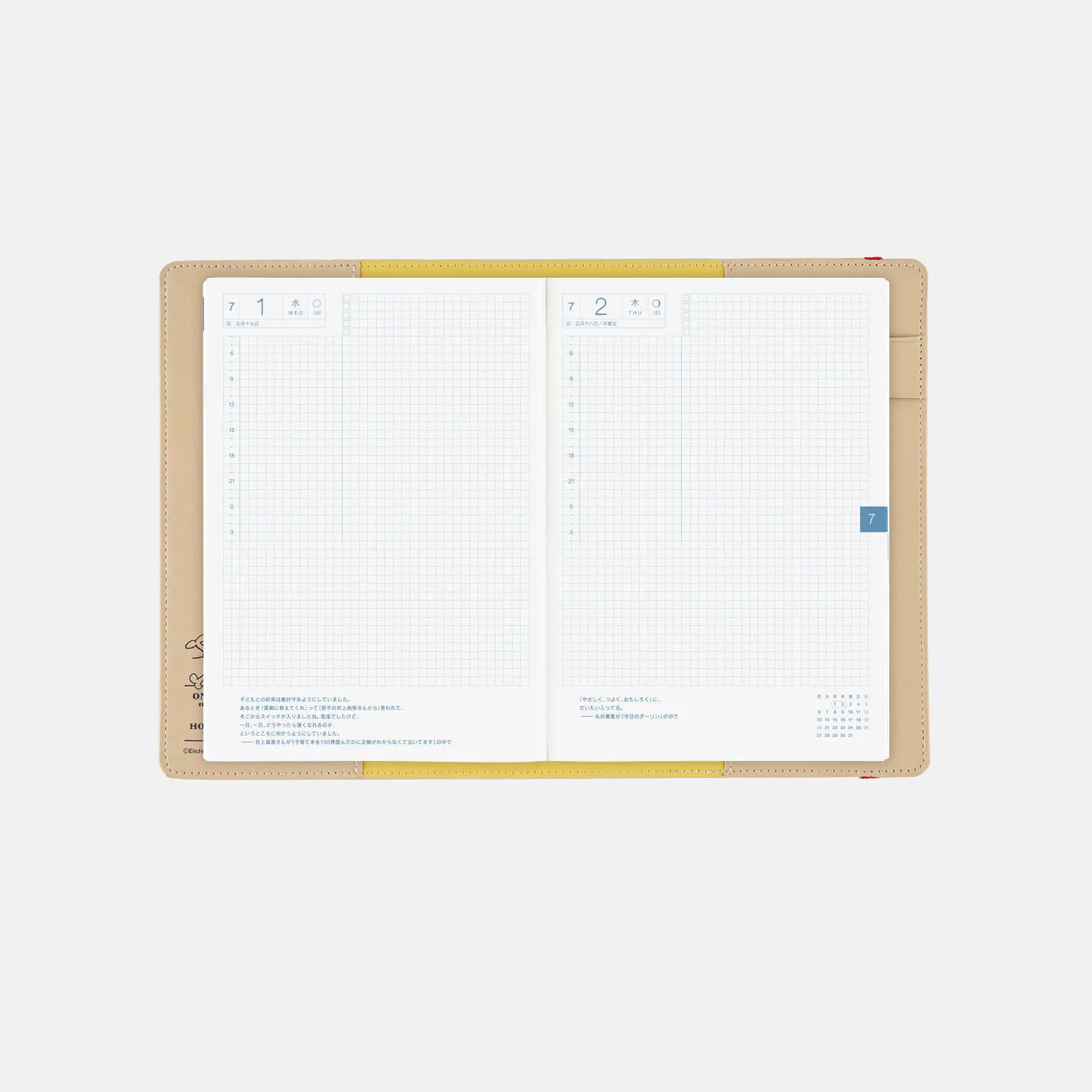 *右ページに「ミニカレンダー」を掲載(月曜はじまり)。