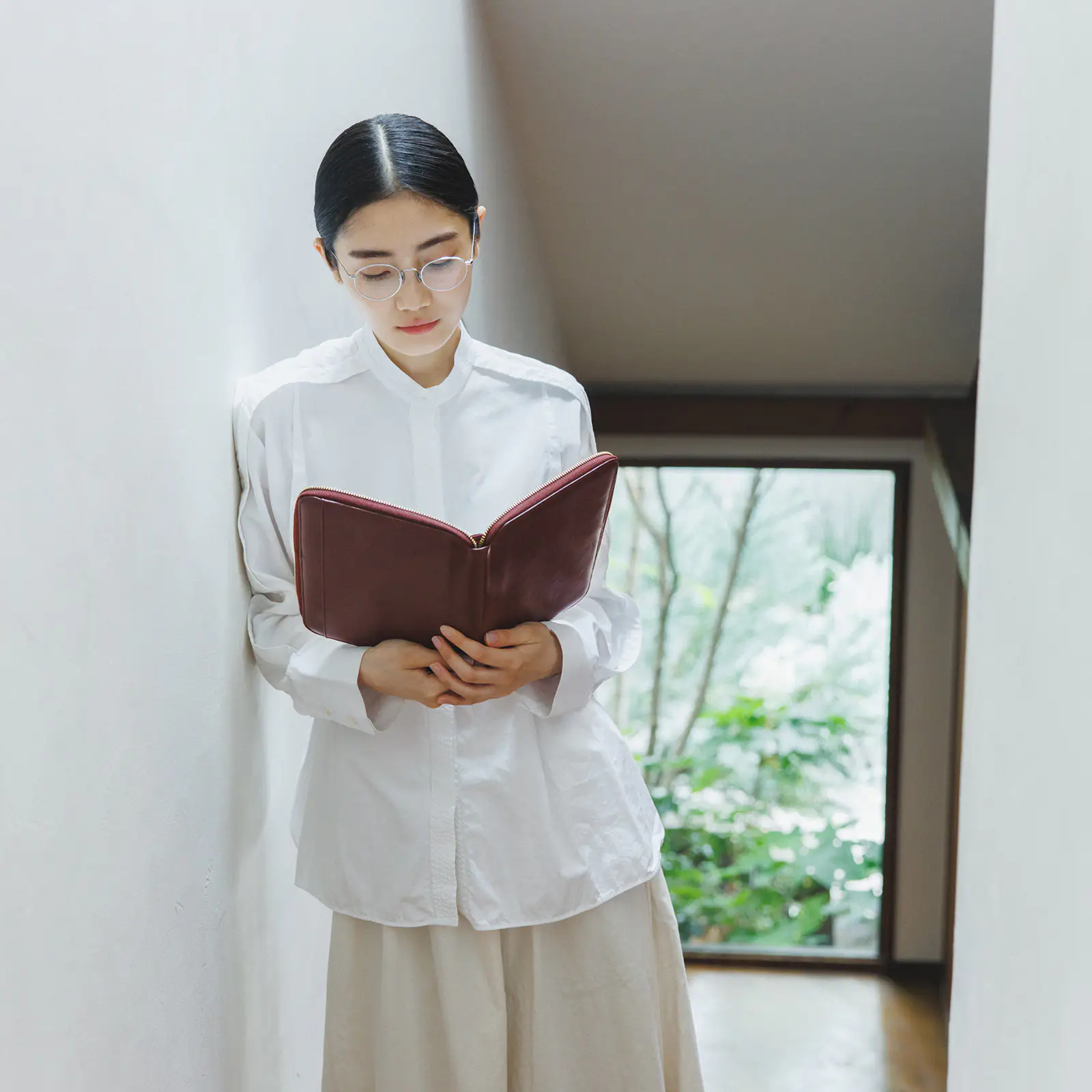 180度平らに開くカバーの構造上、カバー表面の縫製がギャザーのように見えるものもあります。また裏地のたるみがでることがあります。あらかじめご了承ください。