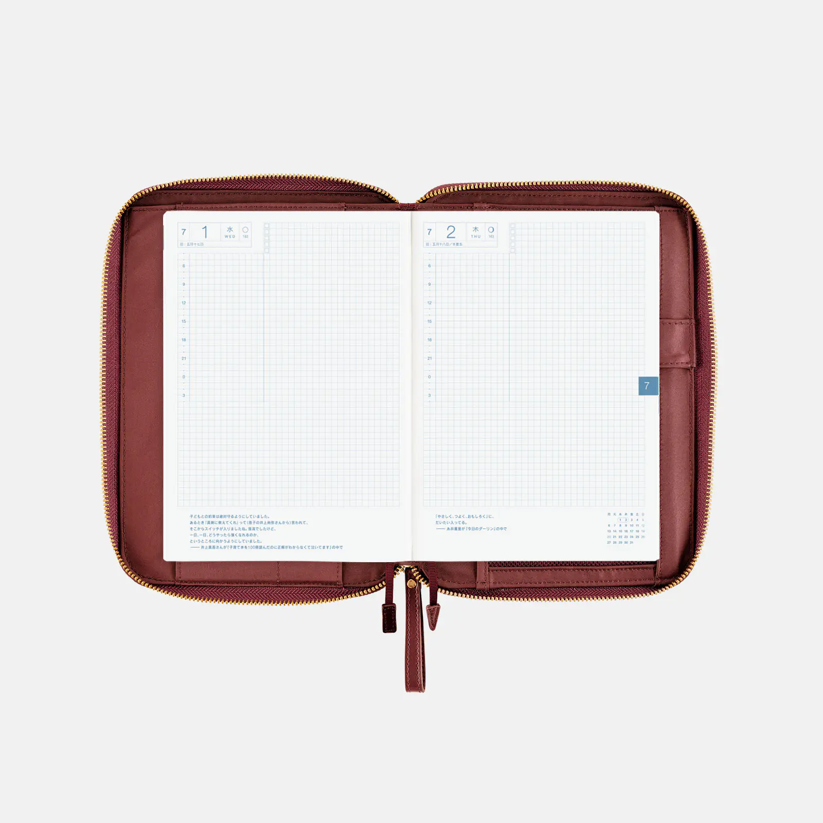 1日のスペースが広く、のびのびと書けるA5サイズ。家や仕事場に置いておく「置き手帳」や育児日記、交換日記といった用途にもおすすめです。