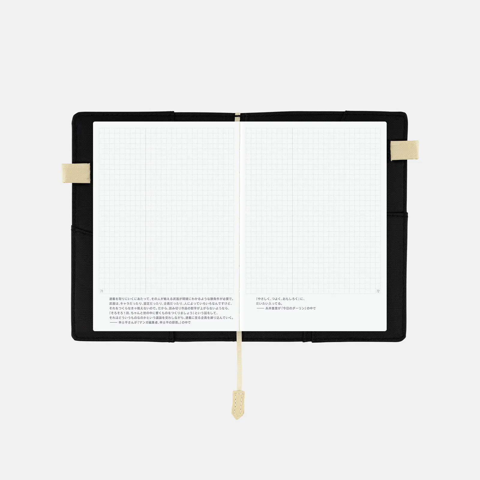 巻頭には月間(マンスリー)のカレンダー、残りは方眼ノートページの手帳。日付にとらわれず、書きたいときに好きなだけ書ける自由度の高い手帳です。