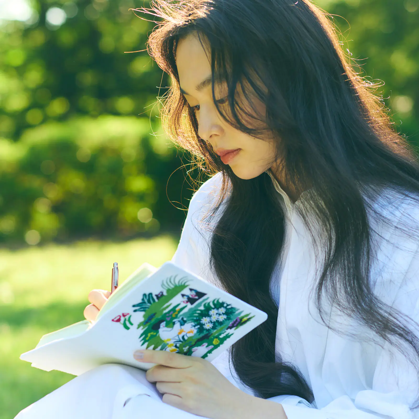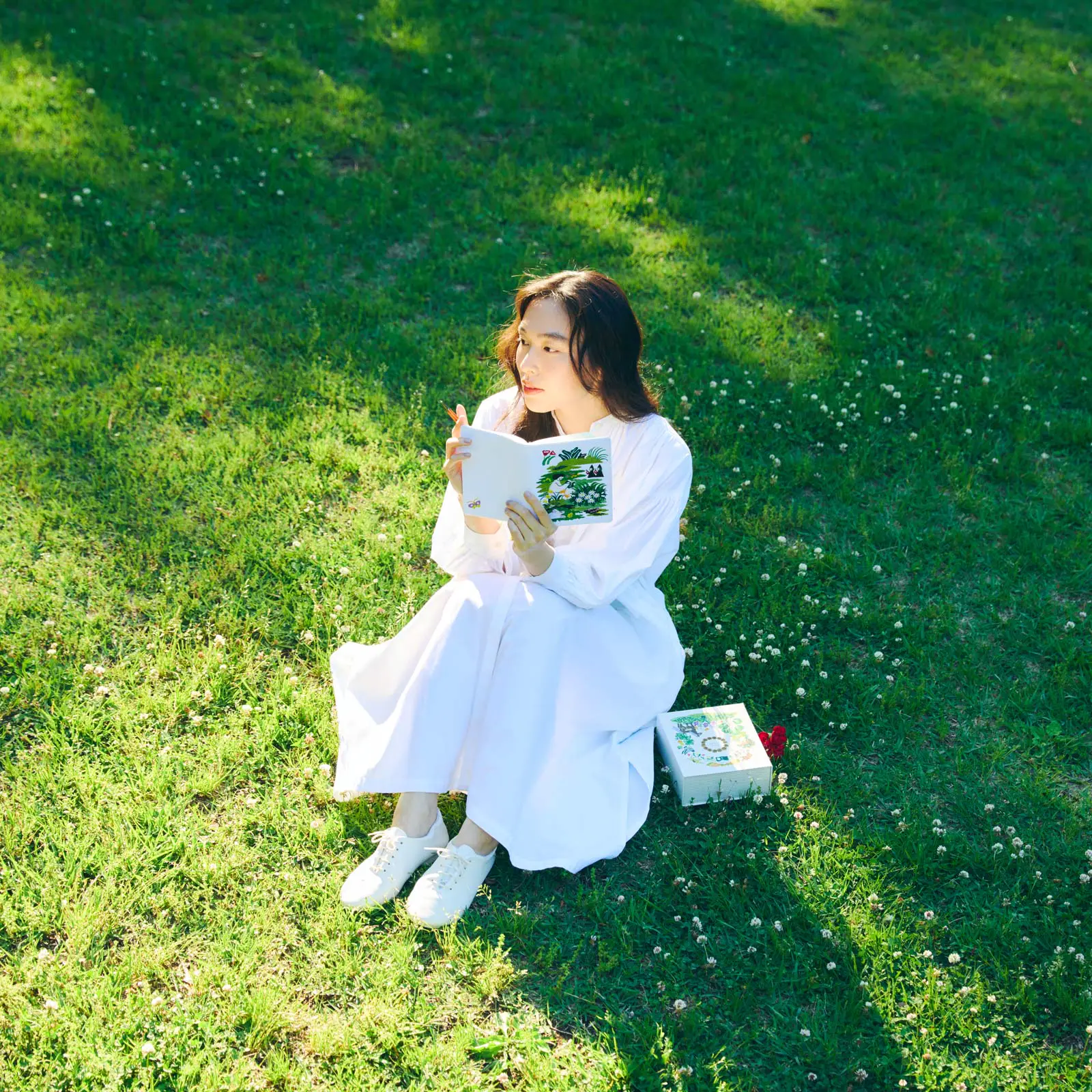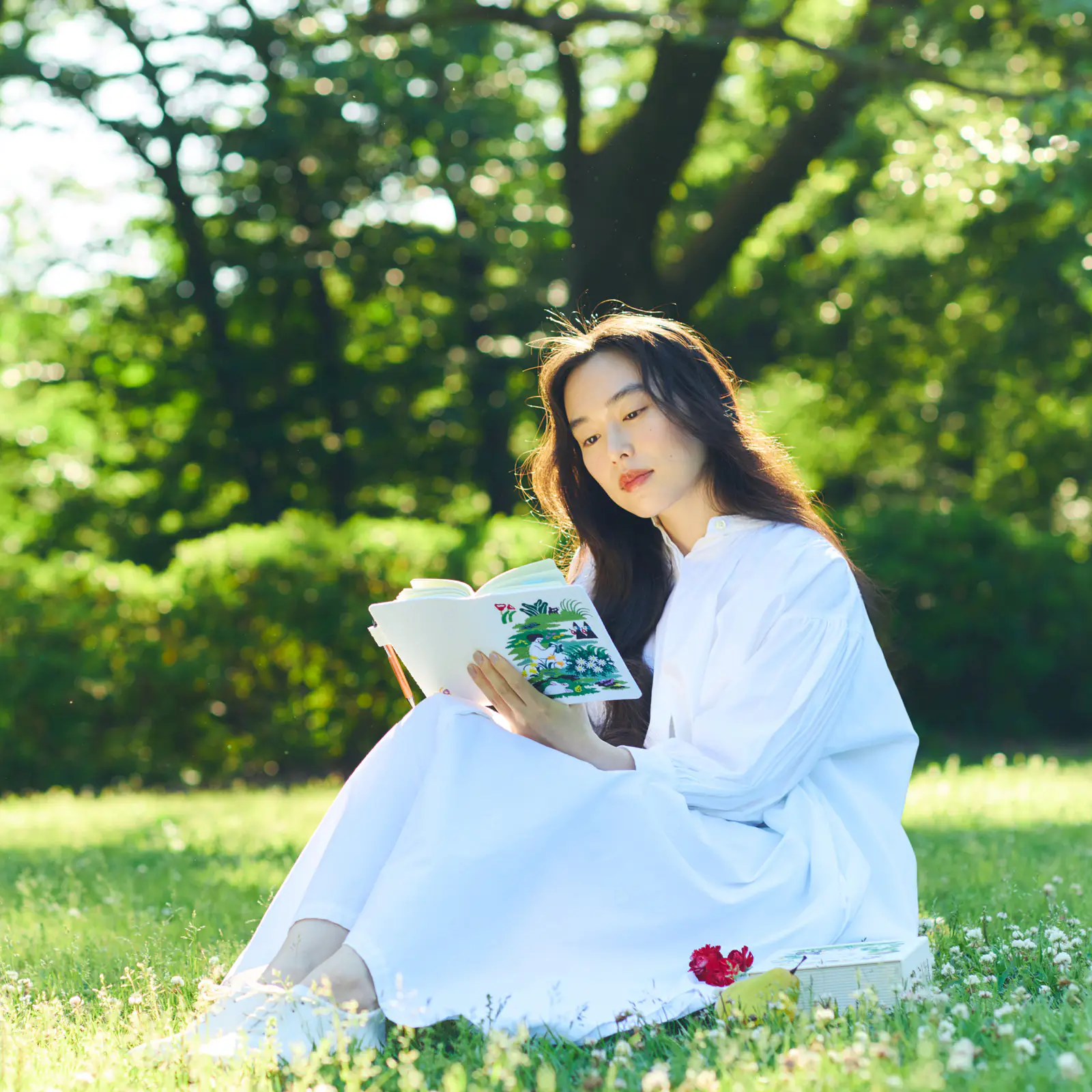 腰を下ろして読書をたのしむ