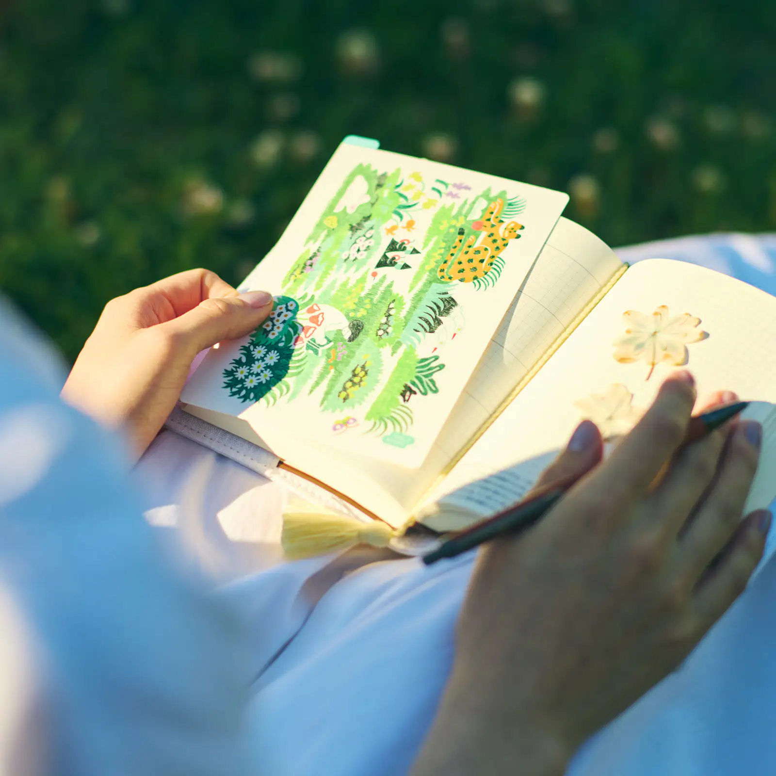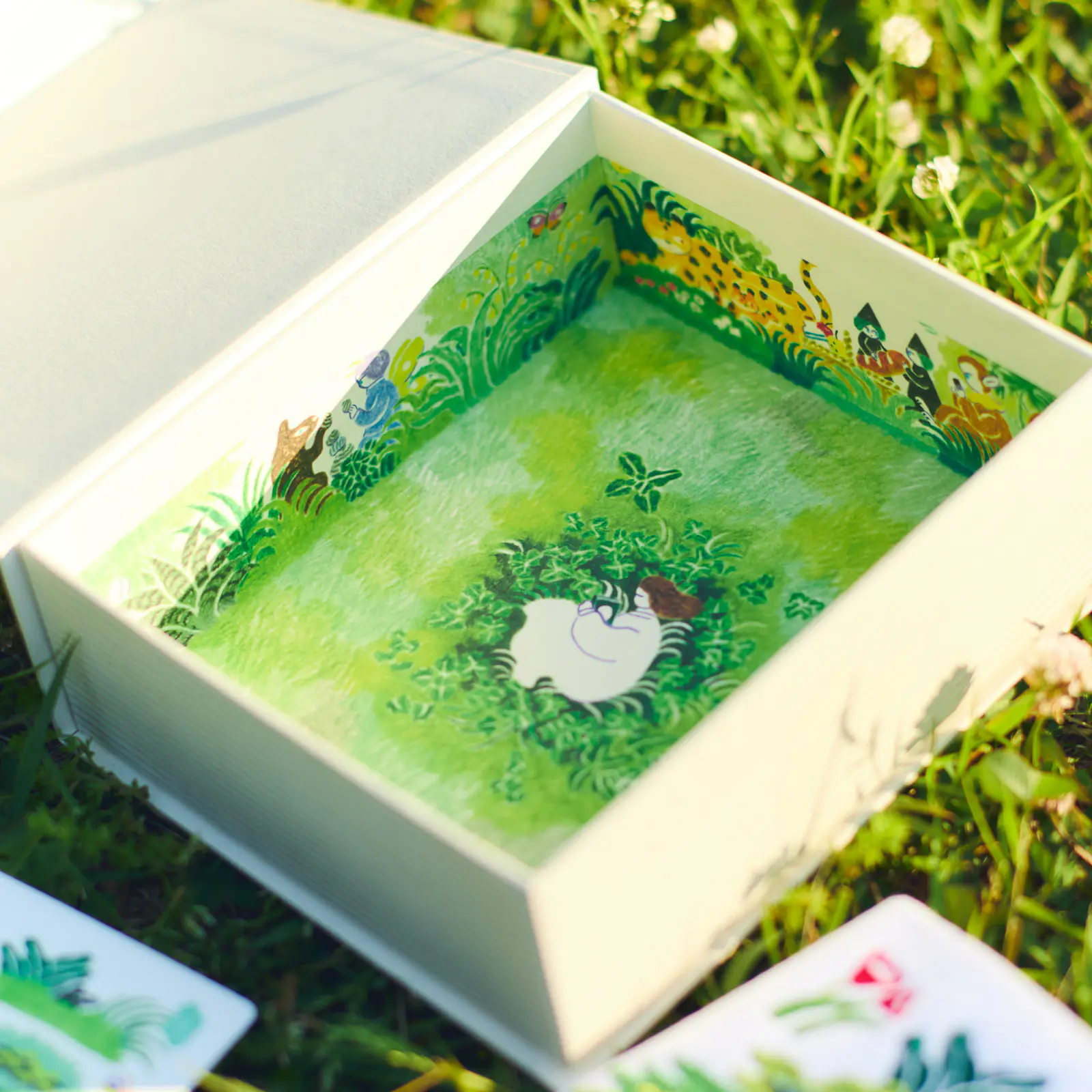 箱のふた部分では、生き生きとした植物と戯れる