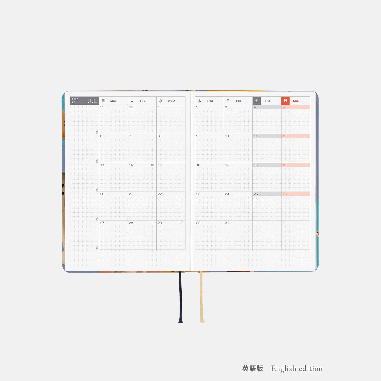 おまけページTime Table / Graph Paper / Favorites / My 100 / Memories 2026 / 12 Switches to Help You Focus / For a Comfortable Night’s Sleep / Words to Remember / 365 Days Check-Off Sheet / Looking Back at the Year 2026 / Getting the Most Out of Your Hobonichi Techo / Gifts / Addresses / Personal Notes