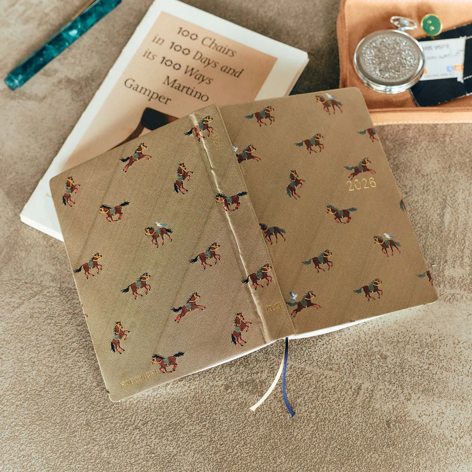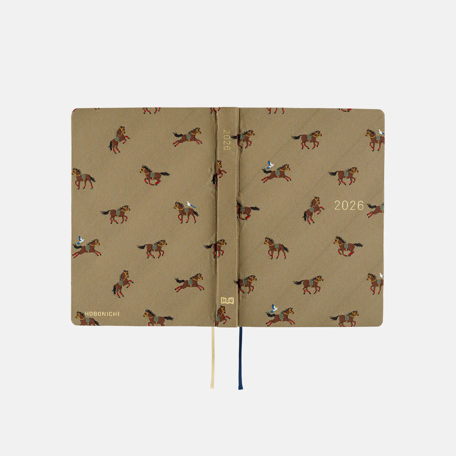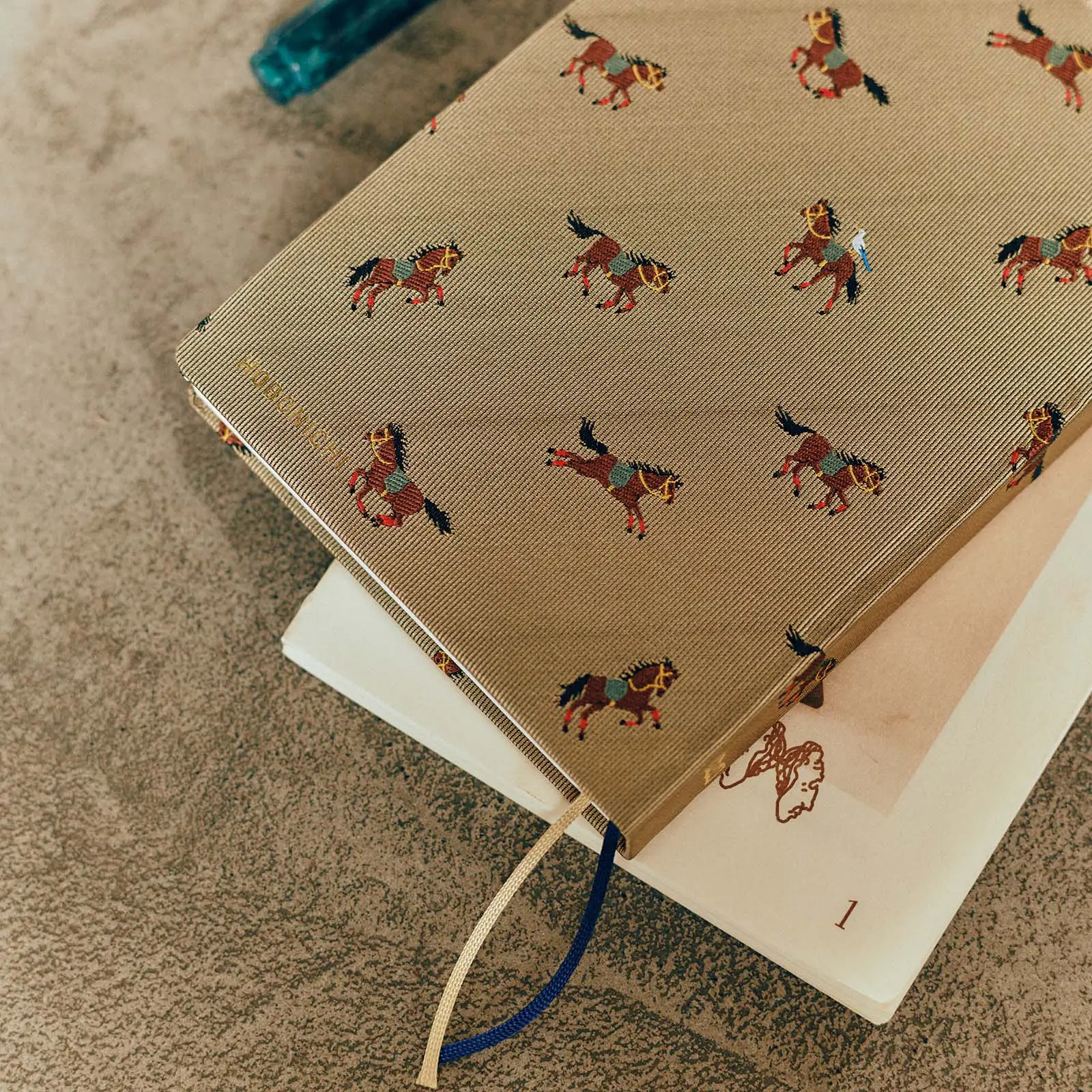 「駆ける馬」の柄では、シックなベージュの表紙に