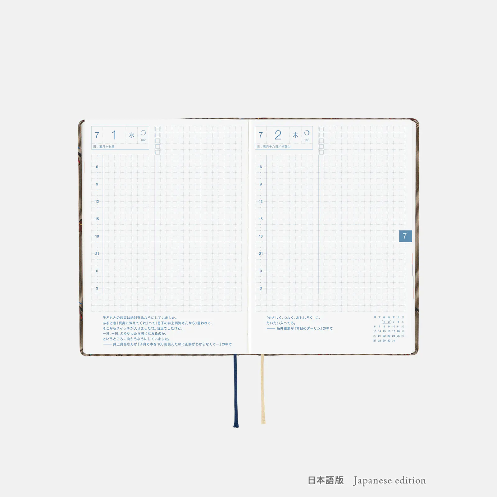 *右ページに「ミニカレンダー」を掲載(月曜はじまり)。