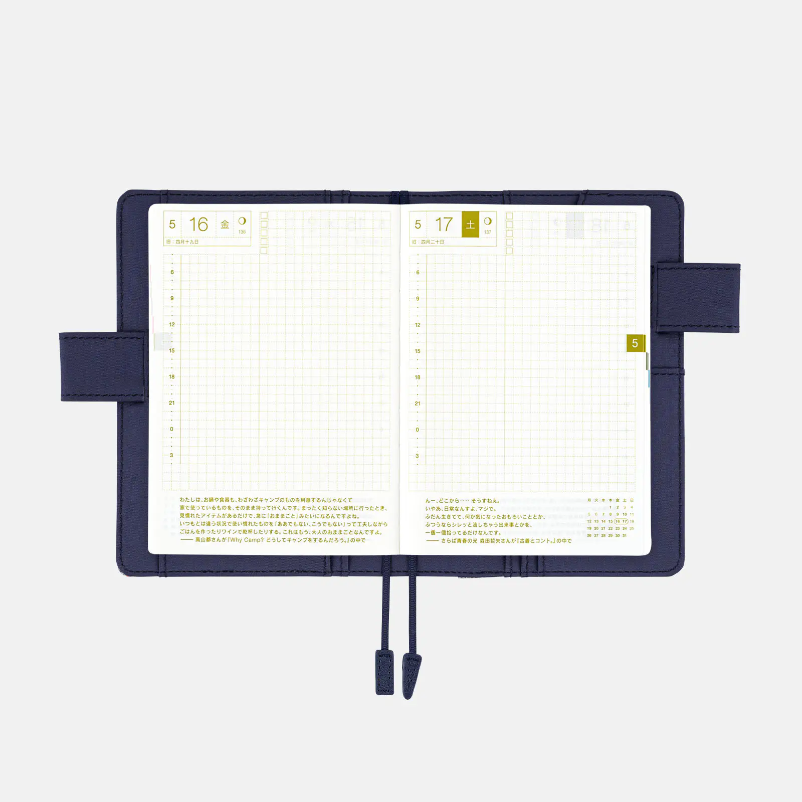 *右ページに「ミニカレンダー」を掲載(月曜はじまり)。