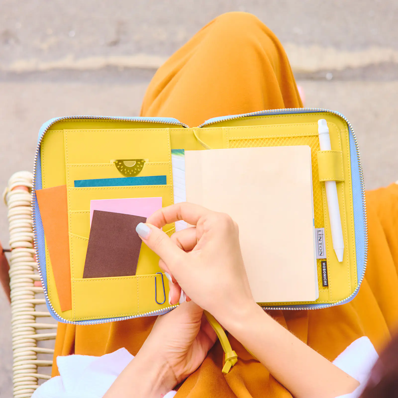 内側は、引き手と同じあざやかな黄色の革。