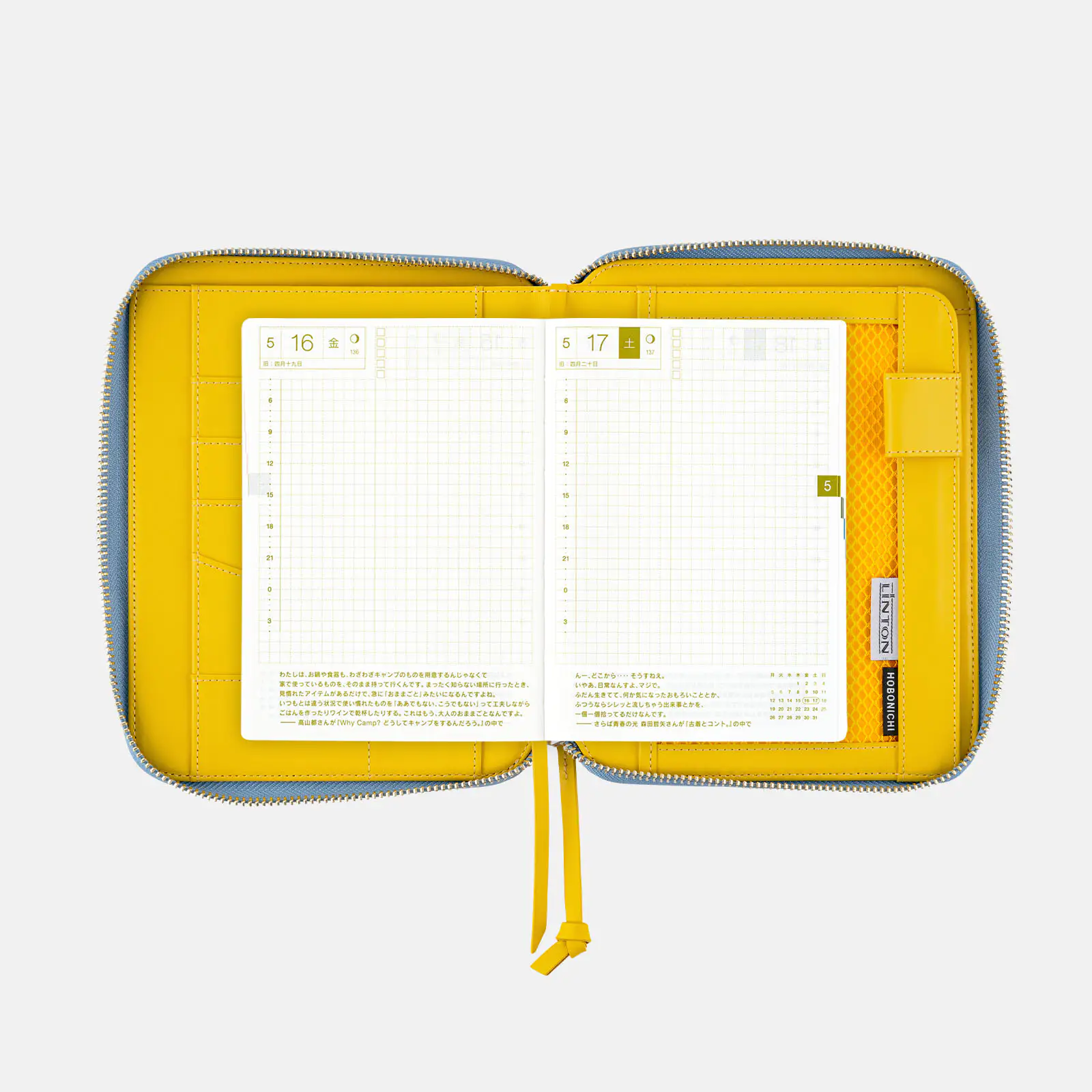 | 記載される内容 | 日番号/週番号(月間カレンダーと1日ページに記載)/月の満ち欠け(1日ページ全ページに記載・月間カレンダーに満月と新月のみ記載) |