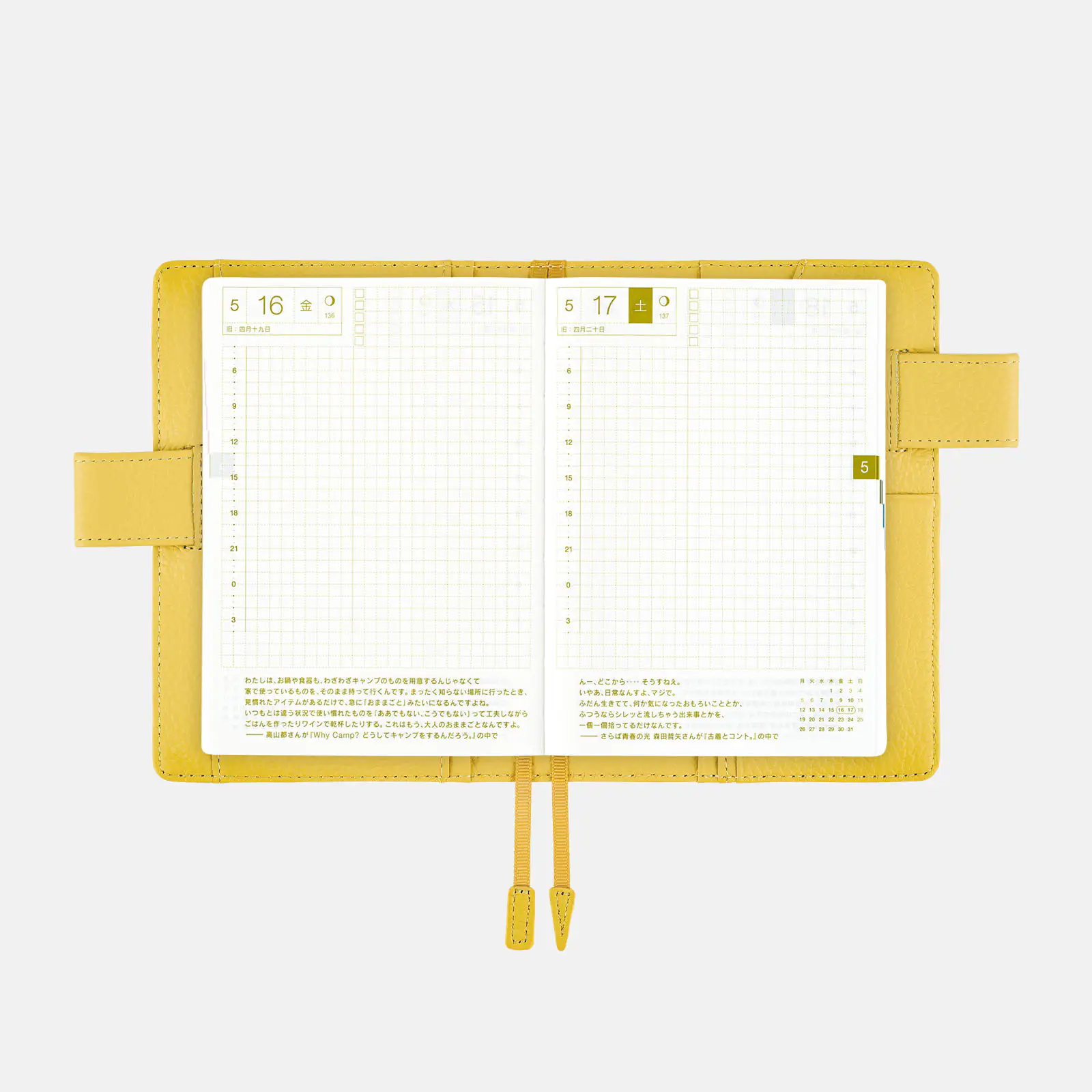 | 1日ページ | 前期 : 2026年1月1日〜6月30日(全187ページ) 後期 : 2026年7月1日〜12月31日(全190ページ) *各月のはじめに、「ことしの歳時記」と、その月のことをまとめて書ける扉ページ(1ページ)があります。 *すべてのページに「日々の言葉」を掲載。 *右ページに「ミニカレンダー」を掲載(月曜はじまり)。 *このほか、1日ページのはじめに、自由に使える「Turning the page to a new year」(前期:2ページ、後期:3ページ)があります。 |