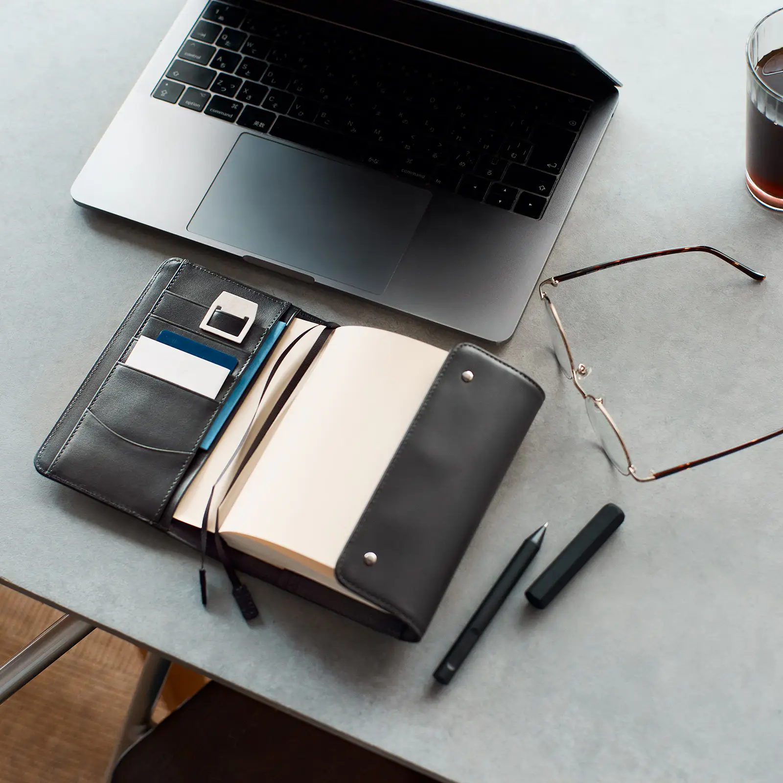 手帳をくるっと包む3つ折りタイプなので、