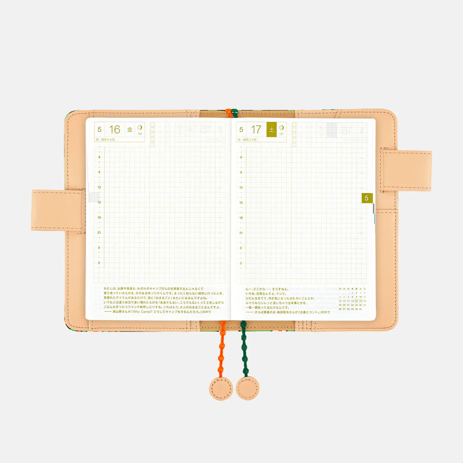 | 1日ページ | 前期 : 2026年1月1日〜6月30日(全187ページ) 後期 : 2026年7月1日〜12月31日(全190ページ) *各月のはじめに、「ことしの歳時記」と、その月のことをまとめて書ける扉ページ(1ページ)があります。 *すべてのページに「日々の言葉」を掲載。 *右ページに「ミニカレンダー」を掲載(月曜はじまり)。 *このほか、1日ページのはじめに、自由に使える「Turning the page to a new year」(前期:2ページ、後期:3ページ)があります。 |