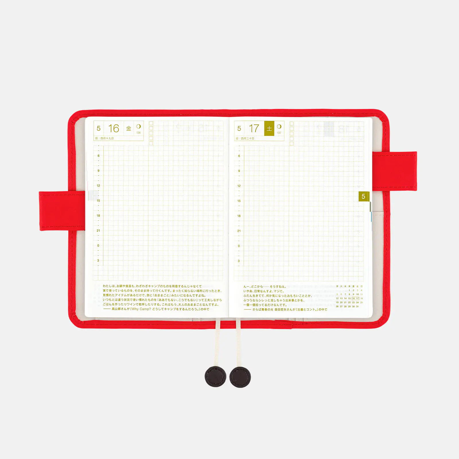 | 1日ページ | 前期 : 2026年1月1日〜6月30日(全187ページ) 後期 : 2026年7月1日〜12月31日(全190ページ) *各月のはじめに、「ことしの歳時記」と、その月のことをまとめて書ける扉ページ(1ページ)があります。 *すべてのページに「日々の言葉」を掲載。 *右ページに「ミニカレンダー」を掲載(月曜はじまり)。 *このほか、1日ページのはじめに、自由に使える「Turning the page to a new year」(前期:2ページ、後期:3ページ)があります。 |