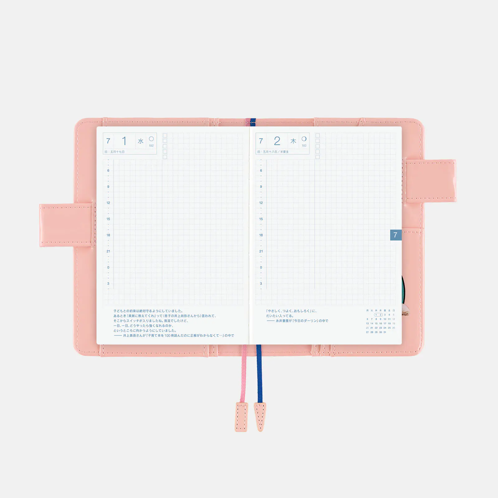 *右ページに「ミニカレンダー」を掲載(月曜はじまり)。