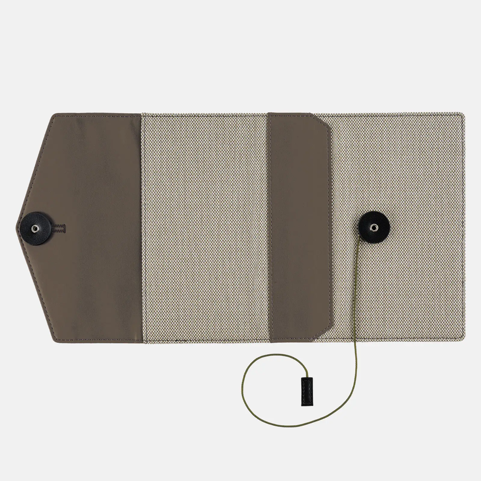 紐をほどいて、三角のフラップ部分を開くと、