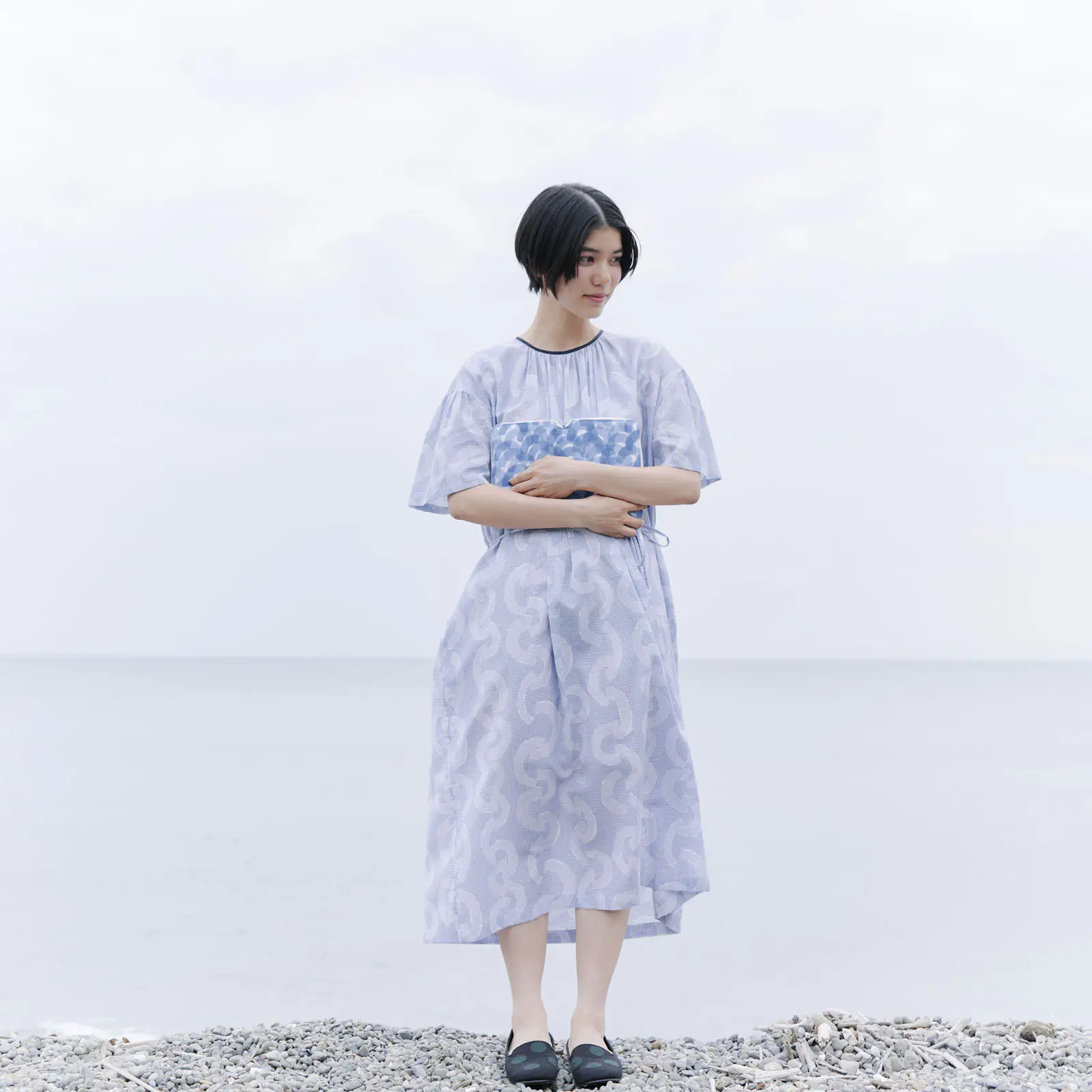 プリント柄に白い点が見えることがあります。ネップ(繊維のふし、かたまり)に染料が乗り、後工程でネップが取れてしまうことが要因です。天然繊維がゆえのものですのであらかじめご了承ください。