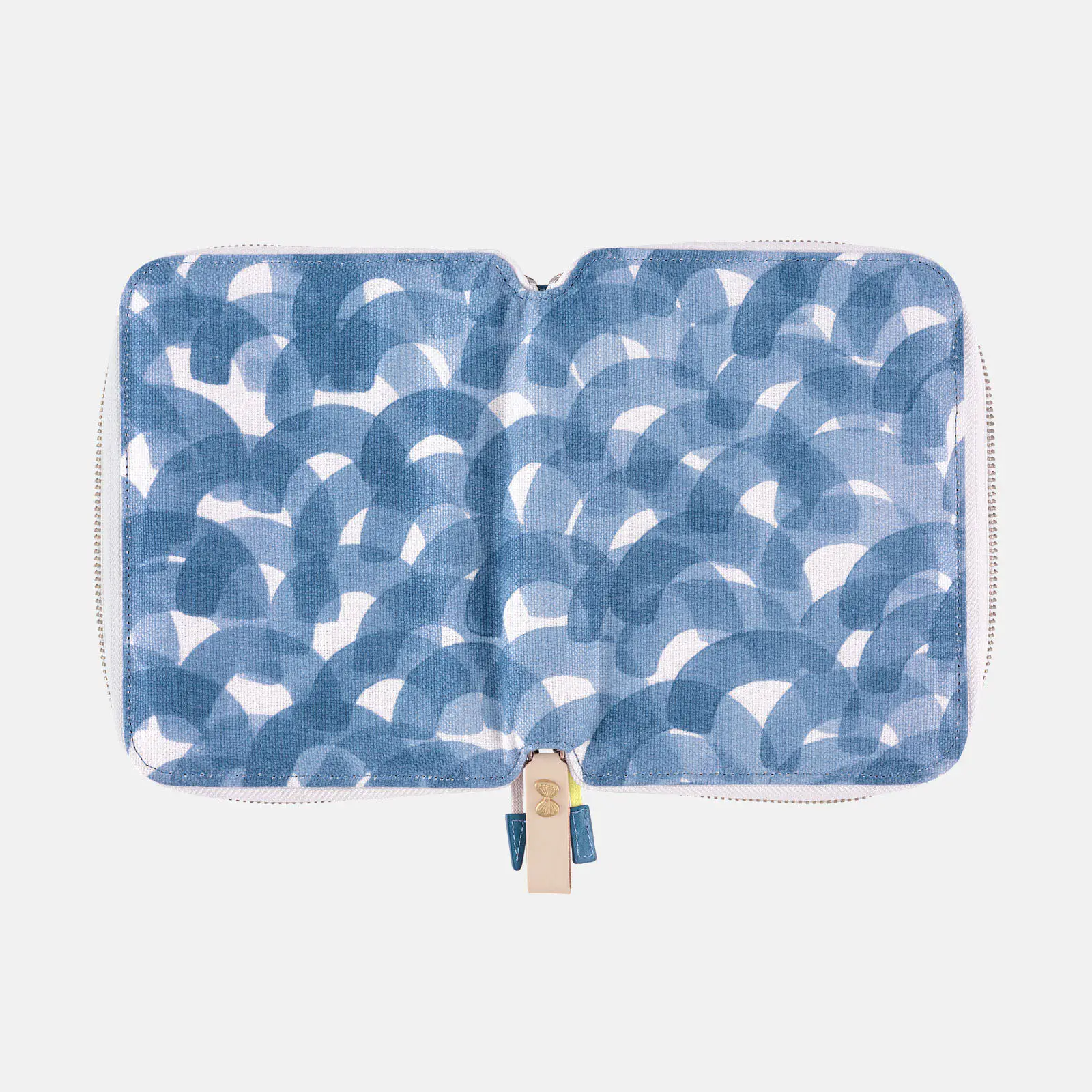 180度平らに開くカバーの構造上、カバー表面の縫製がギャザーのように見えるものもあります。また裏地のたるみがでることがあります。あらかじめご了承ください。