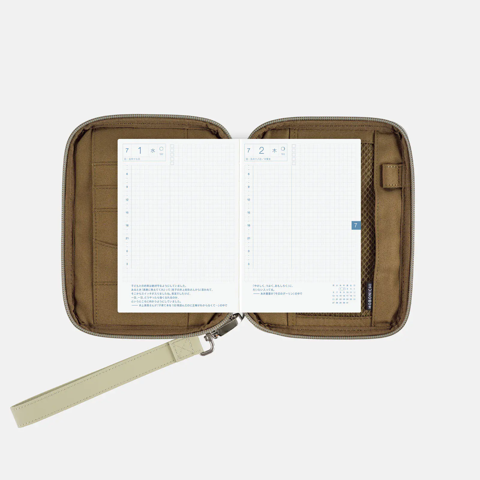 | 1日ページ | 前期 : 2026年1月1日〜6月30日(全187ページ) 後期 : 2026年7月1日〜12月31日(全190ページ) *各月のはじめに、「ことしの歳時記」と、その月のことをまとめて書ける扉ページ(1ページ)があります。 *すべてのページに「日々の言葉」を掲載。 *右ページに「ミニカレンダー」を掲載(月曜はじまり)。 *このほか、1日ページのはじめに、自由に使える「Turning the page to a new year」(前期:2ページ、後期:3ページ)があります。 |