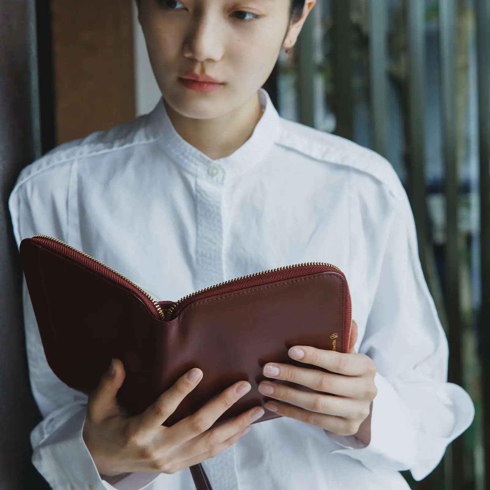 180度平らに開くカバーの構造上、カバー表面の縫製がギャザーのように見えるものもあります。また裏地のたるみがでることがあります。あらかじめご了承ください。